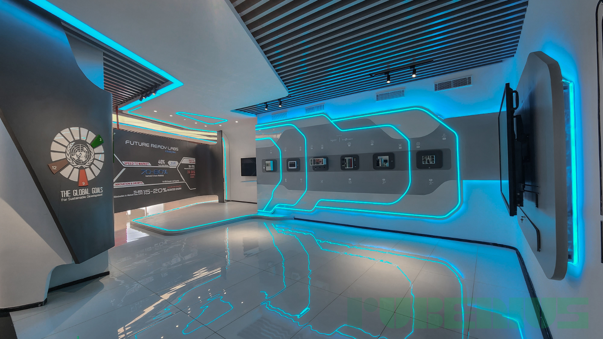 Multi-touch tables and interactive walls allow intuitive navigation through data, products, or master plans. Large-scale LED walls and spatial media displays create immersive storytelling moments, while projection and holographic technologies elevate premium showcases.