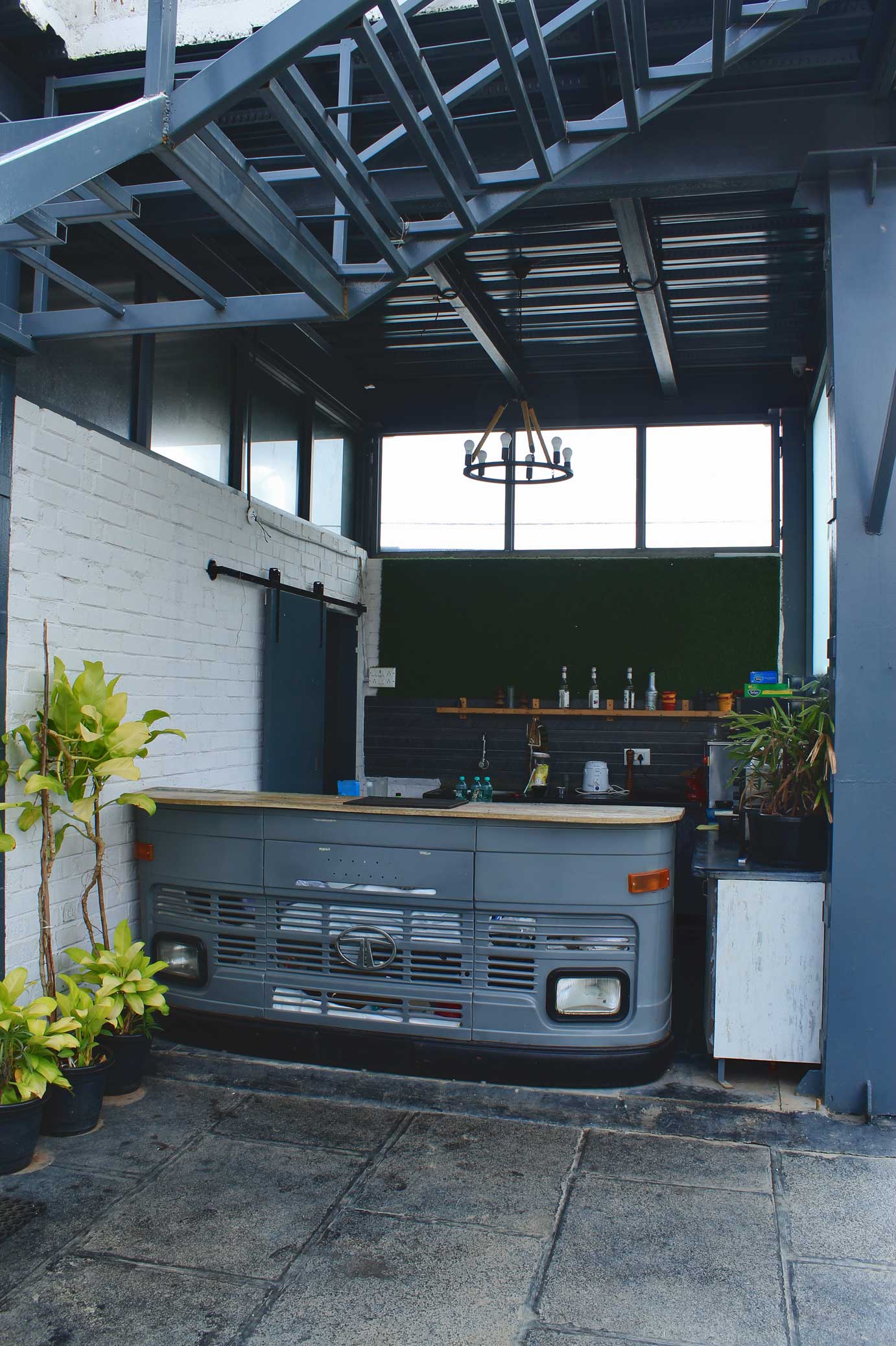 Nandi Hills is one of the places Bangaloreans go to escape the chaos. This project was a dream of Ground Zero to build a place with the serenity of nature and rejuvenating atmosphere. Inspired by an industrial theme, we repurposed vintage tractors and discarded truck for tables to make the furniture. The design of the cafe is simple with neutral colours enhancing the view of the outdoors to make the people connect with nature. For this project, we took a sustainable approach and used any available materials on the site, from recycled materials to waste, re-purposed to be used as furniture.