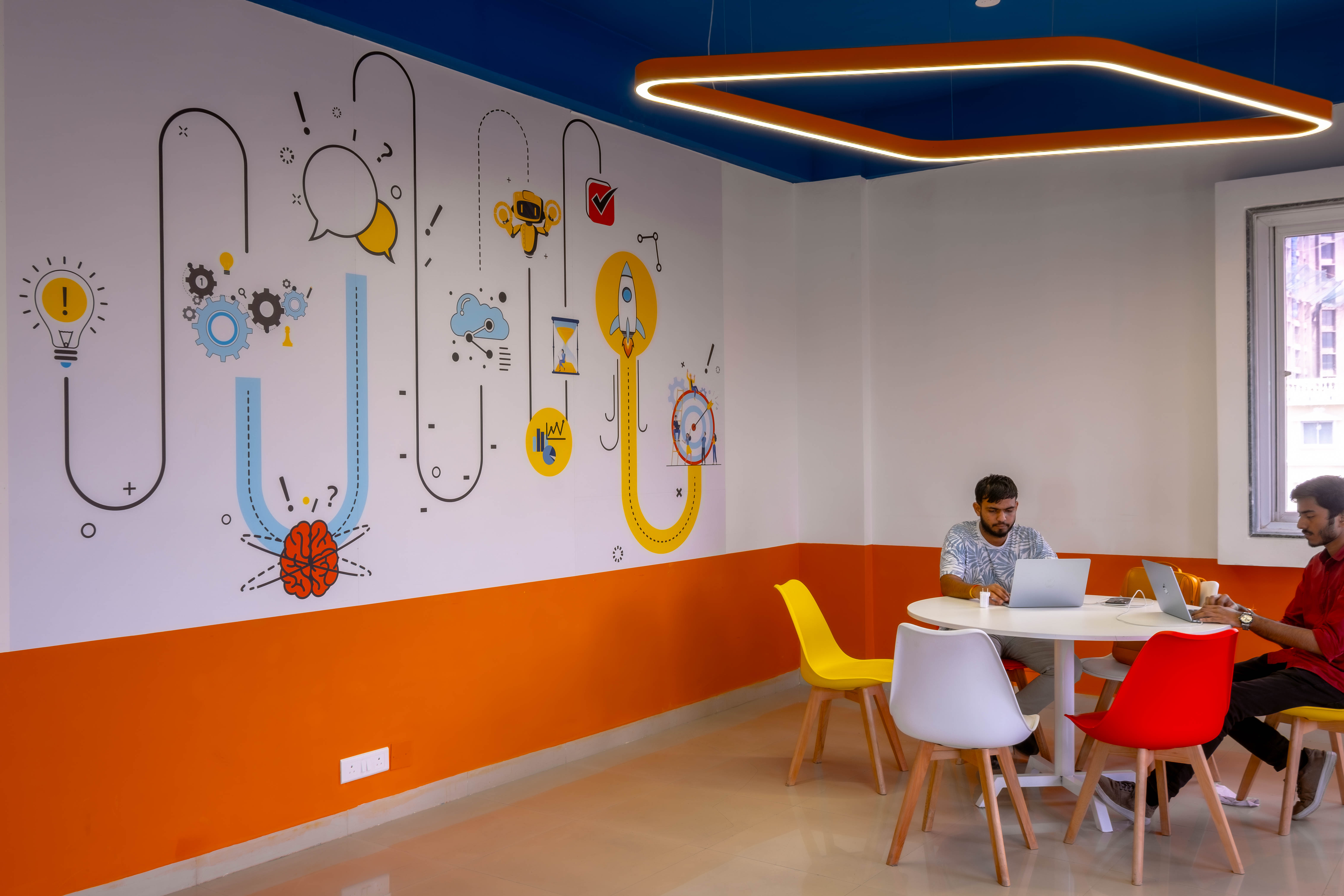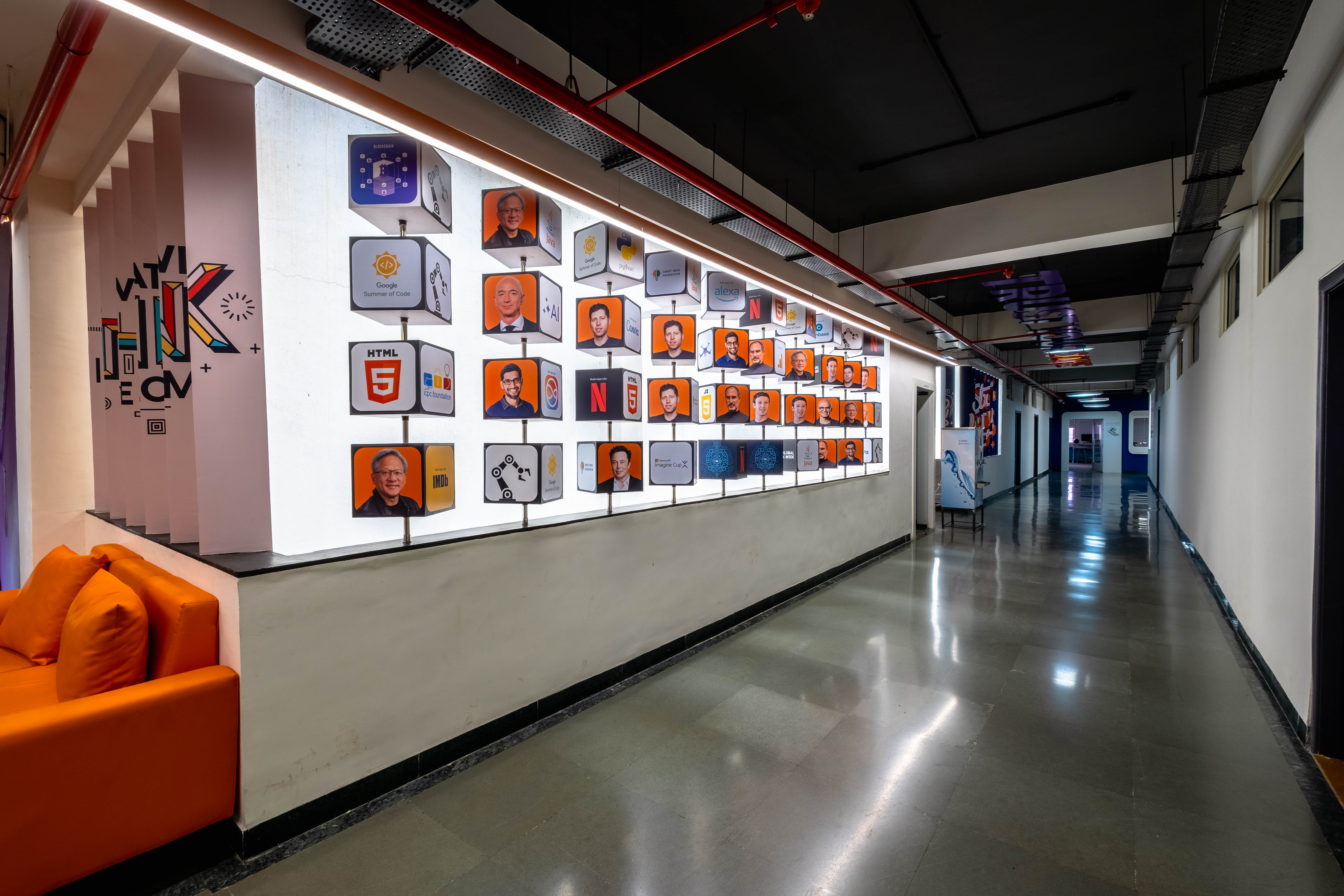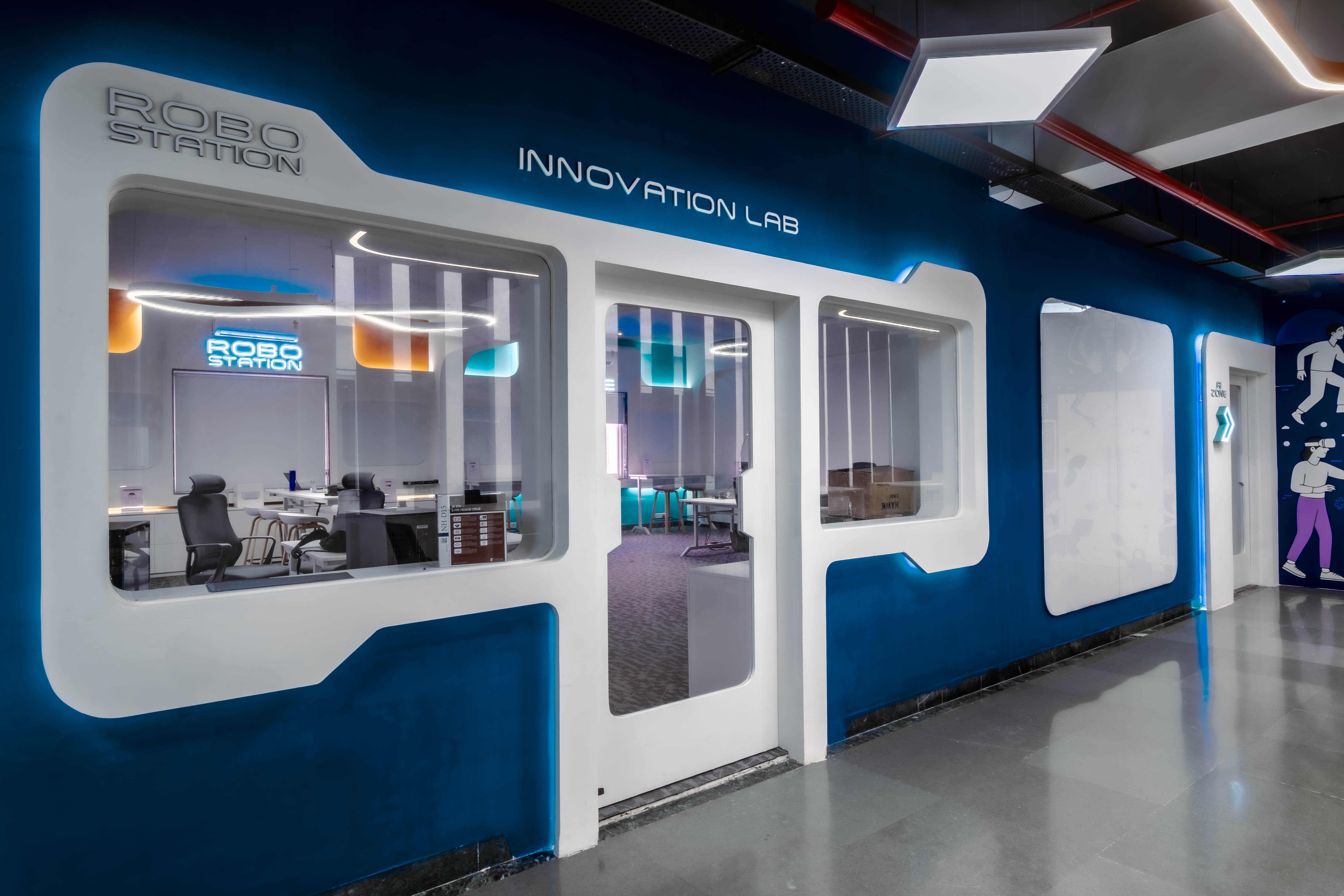 The Vedam School of Technology Learning Experience Centre in Pune is a 10,500 sq ft, high-performance academic ecosystem within Ajeenkya DY Patil University designed to redefine how engineering is taught by aligning pedagogy, space, and technology into one continuous, build-first learning environment. Conceived not as a classroom upgrade but as a strategic institutional transformation, the centre integrates robotics, drones, AI, coding, prototyping, and high-capacity smart classrooms into a layered yet interconnected spatial system that encourages collaboration, experimentation, and iteration as everyday behavior. Designed within a legacy building envelope and delivered on aggressive timelines without disrupting the live campus, the space uses transparency, hexagonal geometries, modular furniture, and sightline-driven layouts to maximize density, visibility, and flexibility while reinforcing systems thinking and open knowledge exchange. Students move fluidly between lectures, teamwork, prototyping, and presentations in an environment where glass partitions enable visual connectivity without distraction, ergonomic planning ensures comfort, and integrated MEP, acoustic, and smart AV systems remain invisible yet performance-driven. The result is a scalable, future-ready academic infrastructure that supports parallel learning modes, strengthens admissions appeal, enhances industry engagement, and builds student confidence, demonstrating how space itself can function as pedagogy, transforming engineering education from theory-led instruction into a continuous culture of making, testing, and innovation.